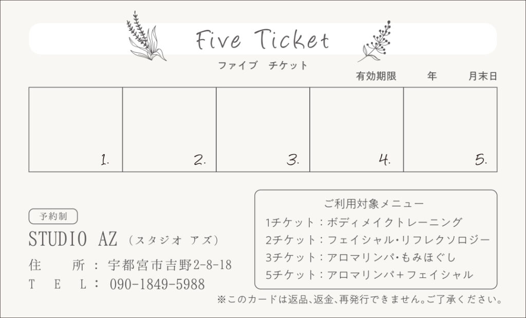 宇都宮市 トータルビューティサロンSTUDIO AZ様 ショップカード制作